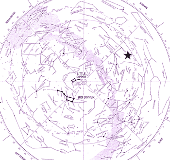A full-color star chart locates the exact position of the star in the night sky, relative to the Big Dipper and North Pole. With this chart, the star can be easily located without a telescope.